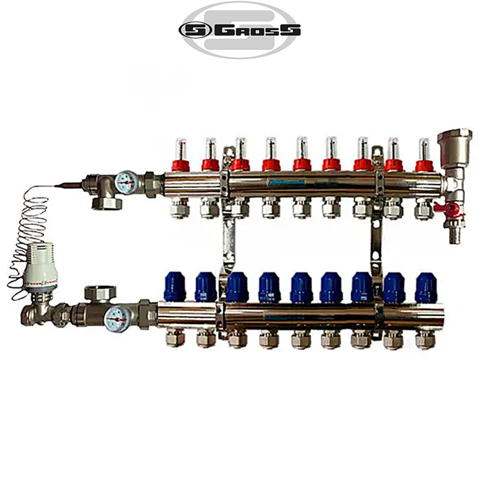 КолекторGROSSдля системи "ТЕПЛА ПІДЛОГА"із витратомірами 9 виходів.