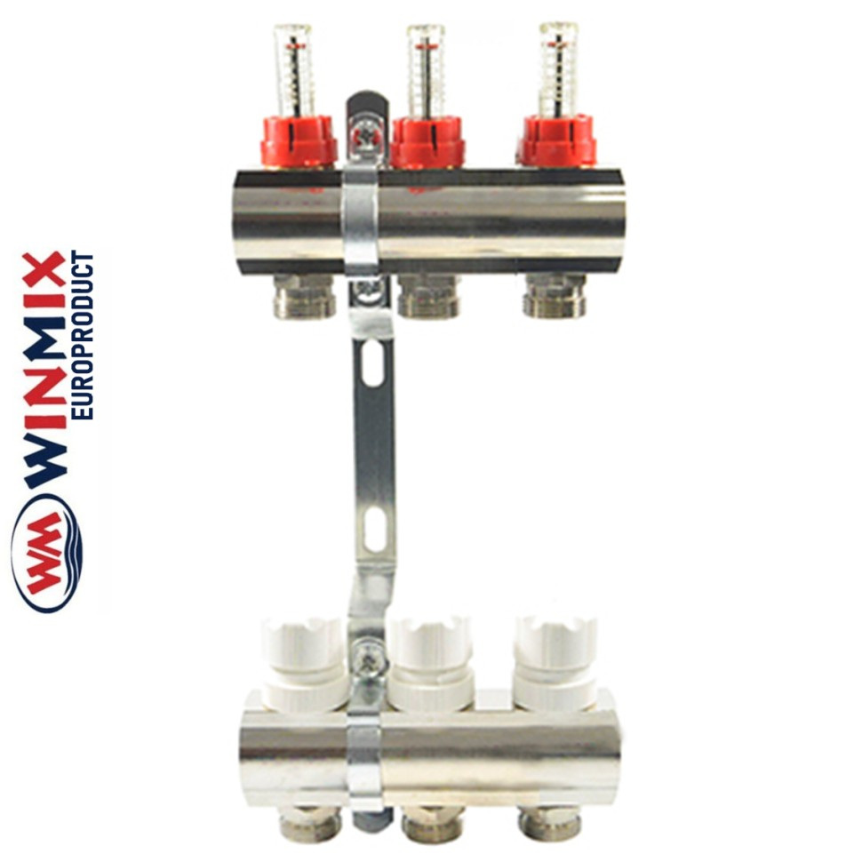 Колектор Winmix EUROPRODUCT для системи "ТЕПЛА ПІДЛОГА" з витратомірами 3 виходи.