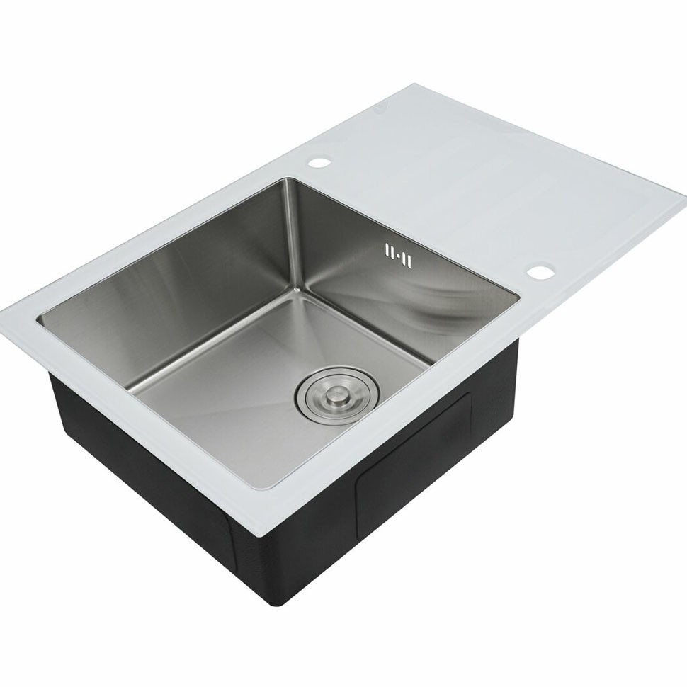 Біле скло стійке до високих температур, барвників і подряпин, що забезпечує довговічність та збереження естетики протягом тривалого часу. Конструкція передбачає врізний монтаж завдяки продуманому дизайну краю максимально вписуються в стільницю, створюючи акуратний і сучасний вигляд. До миття додається вбудований сифон із системою переливу та необхідні кріпильні елементи, що дозволяє провести монтаж одразу після доставки. Модель Platinex Handmade WHITE GLASS 78×51 — це поєднання вишуканого дизайну, зручності у використанні та надійних експлуатаційних характеристик, що ідеально підходить для сучасних кухонь, оформлених у світлих, свіжих тонах.