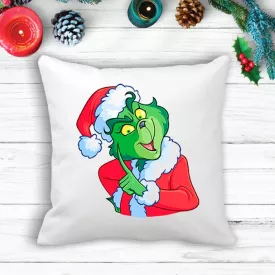Подушка с новогодним принтом Гринч The Grinch Санта Белый Кавун П003616