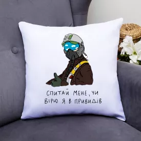 Подушка декоративная с принтом "Спитай мене, чи вірю я в привидів" Белый Кавун П000349