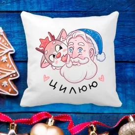 Подушка с новогодним принтом Дед Мороз и Олень "Цилюю" Белый Кавун П003638