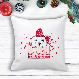 Подушка с новогодним принтом Щенок в подарочной коробке Белый Кавун П003577