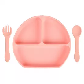 Набор трёх-секционная силиконовая тарелка ложка вилка 2Life Y12 3 шт Персиковый (vol-9768)