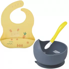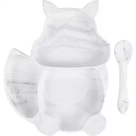 Набор силиконовая трех-секционная тарелка в форме белки ложка 2Life Y1 2 шт Мрамор (vol-10001)