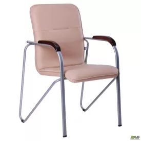 Кресло офисное АМФ Самба кожзам черный на ножках хром с деревянными подлокотниками для посетителей