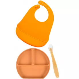 Набір силіконова тарілка килимок, силіконовий слинявчик і ергономічна силіконова ложка (vol-1103)
