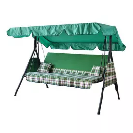 Садовая качеля Vitan Дача трехместная 2005х1600х1440 мм раскладная в цвете зеленом с тюльпанами