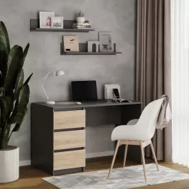 Письмовий стіл на 3 шухляди без ручок No Brand FT-224 Left 1200х600х750 мм Антрацит-Дуб Сонома (12934467)