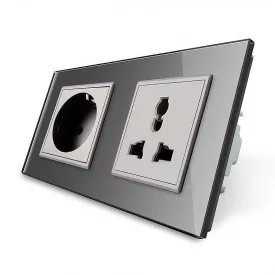 Розетка двухместная силовая и универсальная серый стекло Livolo (VL-C7C1EUC1C-15)