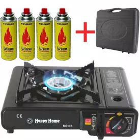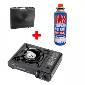 Плита газовая настольная ANNEK портативная туристическая однокомфорочная в кейсе черная