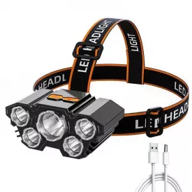 Фонарик налобный аккумуляторный Led L-T21 налобный фонарь 5 светодиодов с USB зарядкой | 294 грн |