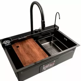 Кухонна мийка прихована Platinex Handmade CM 40*50 PVD (зі змішувачем диспенсером), Чорний
