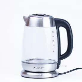 Электрочайник стеклянный Sokany SK-SH-1070 бесшумный с подсветкой 2,2л сталь (SKSH1070CST)