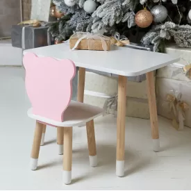 Столик дитячий та стільчик No Brand Ведмедик 46х60х45 см Біло-рожевий (2030752315)