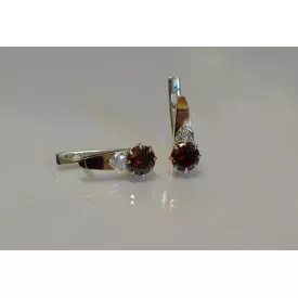Серебряные серьги Sil с золотыми вставками 124s-4 Гранат (Sil-777)