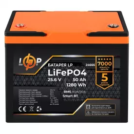 Аккумулятор LogicPower LiFePO4 25,6V - 50 Ah 1280Wh BMS 80A/50А пластик Smart BT (LP24666)