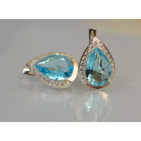 Серьги серебрянные Sil Myau с золотыми пластинами и фианитами 099s-14 Танзанит (Sil-685)