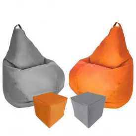 Комплект кресло-мешок груша 120x90 см 2 шт + 2 пуфа 30x30 см Tia-Sport серый/оранжевый (sm-0619-29)