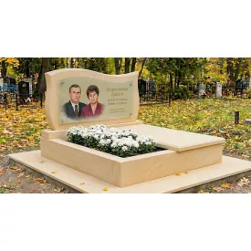 Подвійний пам'ятник із сірого граніту з майданчиком