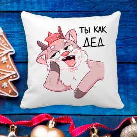 Подушка с новогодним принтом Дед Мороз на скейте c колокольчиком "Merry Christmas" Белый Кавун П003671