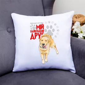 Подушка декоративная с принтом для собачника "Золотистый ретривер Мой самый лучший друг" Push IT Кавун П000767