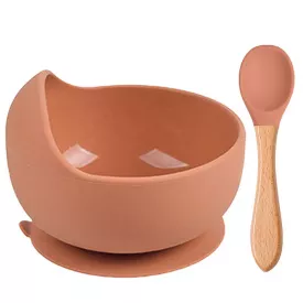 Набор силиконовая круглая тарелка для первых блюд и ложка 2Life Y15 2 шт Бежевая (vol-10167)
