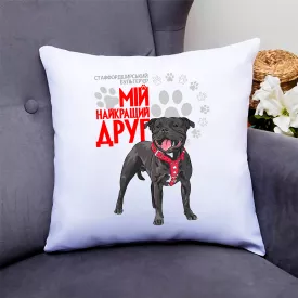 Подушка декоративная с принтом для собачника "Стаффордширский бультерьер Мой самый лучший друг" Push IT Кавун П000786