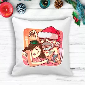 Подушка с новогодним принтом Дед Мороз с девушкой Белый Кавун П003589