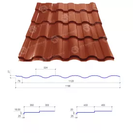 Металлочерепица Прушиньски Arad Classic PE 350 мм 1179х55 мм коралл