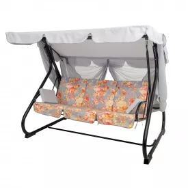 Трехместная садовая качеля Vitan Графиня разборная металлическая с тентом бязь зеленая роза