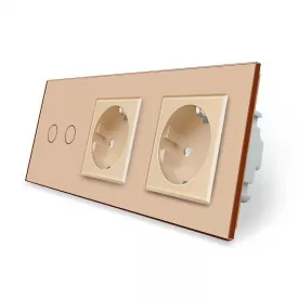 Умный сенсорный проходной выключатель 2 сенсора 2 розетки золотой стекло Livolo (VL-C702SZ/C7C2EU-13)