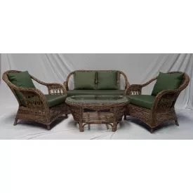 Плетеные кресла с кофейным столиком Cruzo Багама тераса-сет комплект мебели из ротанга в цвете темно-оливковый