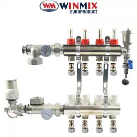 Колекторний вузол у зборі для системи "ТЕПЛА ПІДЛОГА" WInmix на 5 виходів (балка латунь)