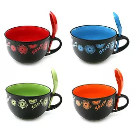 Набор кружек-бульонниц BonaDi 344-22 750мл с керамической ложкой и цветной серединой (SK000513)