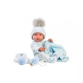 Лялька пупс іспанська вініл силіконова Llorens новонароджений хлопчик з пледом і соскою 43 см Різнокольоровий (1017)