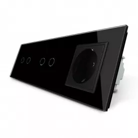 Сенсорный проходной выключатель Livolo 4 канала (2-2) с розеткой черный стекло (VL-C702S/C702S/C7C1EU-12)