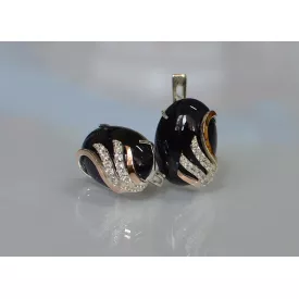 Серьги серебряные Sil с золотыми накладками и фианитами 100s-6 Черный (Sil-1006) | 2100 грн |