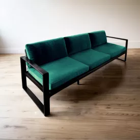 Диван металлический Tobi Sho Лофт Стейт/DV1 с подлокотниками и комплектом из 6 мягких подушек, 750х1600х700 велюр Морская волна/13
