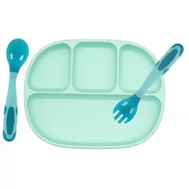 Комплект силіконова тарілка килимок для годування дитини 22х15 см Салатовий та ложечка (vol-911)