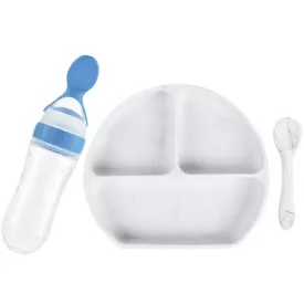Набор силиконовая 3-х секционная тарелка ложка бутылка-ложка 2Life Y1 3 шт Белый/Синий (vol-10018)