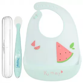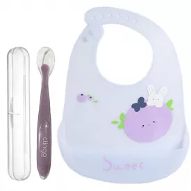 Силиконовый слюнявчик и термочувствительная ложка вилка 2Life 3 предмета Голубой (vol-10511)