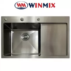 Кухонна мийка Winmix MH7849L NANO-BLACK з нержавіючої сталі зі сходинкою для сушарки, Графіт