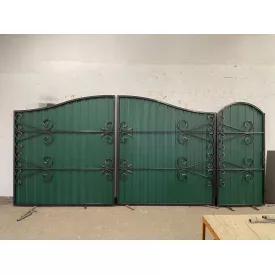 | Ворота с кованым орнаментом и профнастилом Код: А-01137 | 32980 грн |