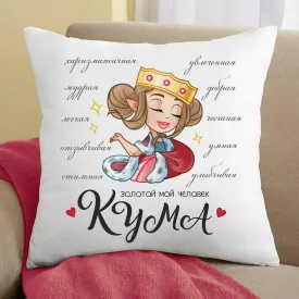 Подушка с принтом "Кума - золотой человек" Белый Кавун П000177