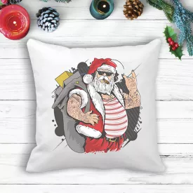 Подушка с новогодним принтом Дед Мороз с сигарой и тату Белый Кавун П003579
