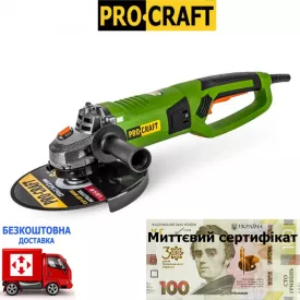 Машина кутова шліфувальна ProCraft PW-2550 230 мм (Плавний пуск, поворотна ручка) +сертификат