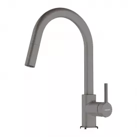 Змішувач для кухні Deante Silia, поворотний, витяжний, 1 важіль, матова сталь (BQS_F73M)