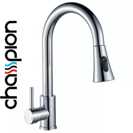 Змішувач для кухні з висувною поворотною лійкою Champion MOZ-014 CHROME з нержавіючої сталі