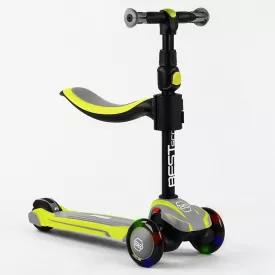 Самокат трехколесный с сидением Best Scooter MAXI PU колеса со светом 60 кг Green and grey (102929)